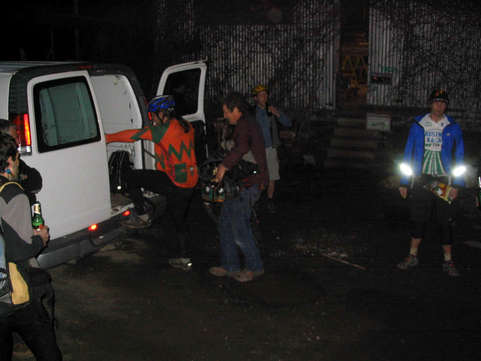 The call was for the group to meet at six at the shop. As the afternoon grew later bodies began to appear. A call was placed to Sean Large. Despite a heavy workload at the home front, he would make the ride. Ryan Gracy, contrary to good sense went macho and shucked aside a nagging knee injury to participate. Jim Korte generously made an appearance in the middle of the week, putting at jeopardy anyone near his backhoe the next day. Fortunately for Michel he was on vacation and would not have to explain his disheveled and weary appearance in class the next day.